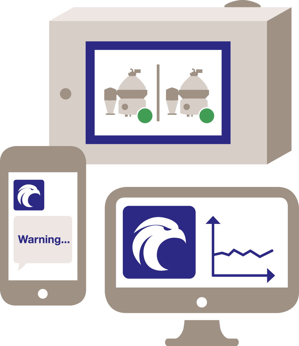 Sensorer på separatorn mäter vibrationer och skickar data för analys. Därefter får du resultaten av analysen i form av statusuppdateringar och trender samt varningar om något kräver din åtgärd.
