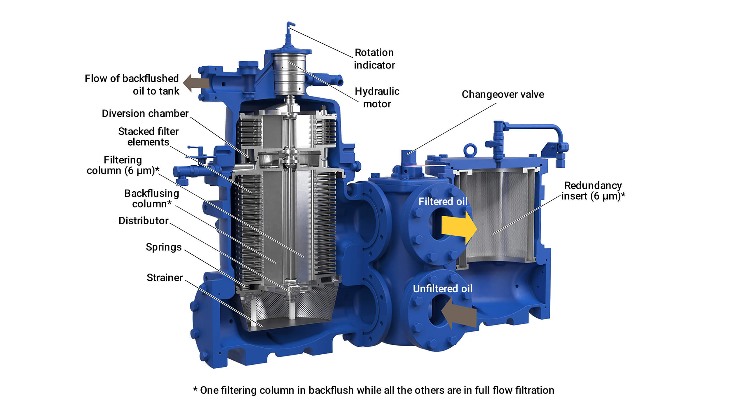 Moatti HCO filters provide the consistent 6-micron filtration that hydraulic control oil requires – without clogging or excessive maintenance. The innovative filter elements create a large filtering area within a compact design, while an improved distribution system enhances efficiency. This enables continuous backflushing with no pressure drop.